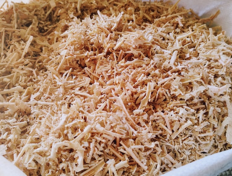Nuestra viruta natural está deshidratada al 90% para proporcionar la absorción óptima. Contiene una mezcla de virutas de diferentes tamaños para permitir una circulación de aire ideal.